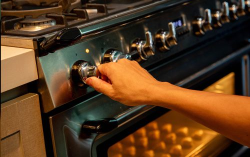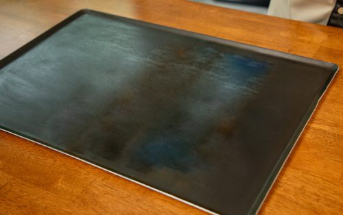 6.เปิดเตาอบที่ 200 องศาเซลเซียส โปรแกรมไฟบนล่าง เตรียมถาดอบ