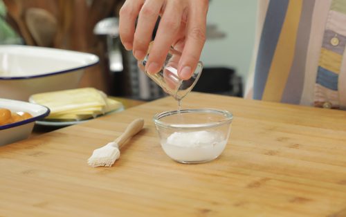 1.ผสมแป้งสาลีกับน้ำสะอาด คนให้เข้ากัน