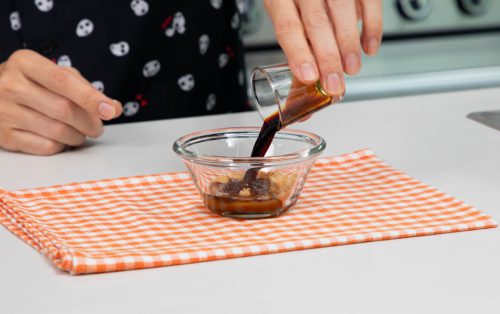 3.Mix soy sauce, mirin, brown sugar, and water to make the teriyaki sauce.