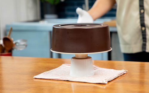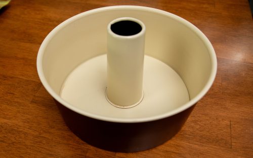 1.อุ่นเตาอบที่อุณหภูมิ 160 องศาเซลเซียส เตรียมพิมพ์ชิฟฟ่อนแบบมีปล่อง ขนาดเส้นผ่านศูนย์กลาง 20 เซนติเมตร