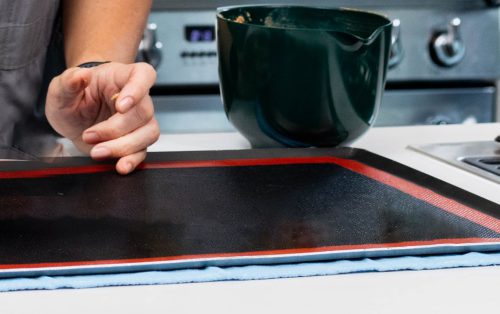 4.ปรับอุณหภูมิเตาอบขึ้นที่ 180 องศาเซลเซียส โปรแกรมไฟล่างไฟบน เตรียมถาดอบรองกระดาษไข