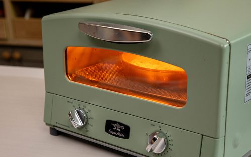 3.นำเข้าอบโดยใช้โปรแกรมย่างไฟบน เข้าอบจนหน้าพาสต้ามีลักษณะที่เกรียมกรอบ