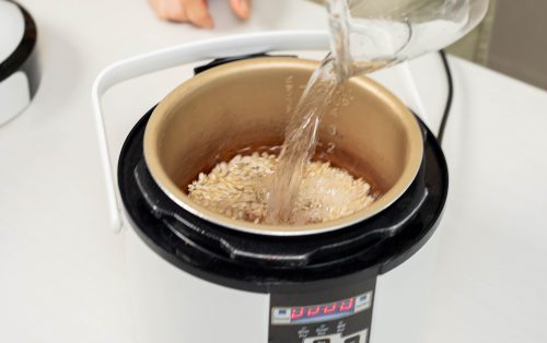 1.Rinse the barley under running water. Place it in a pressure cooker with enough water to cover. Cook under pressure for 12 minutes. Release the pressure, drain the barley, rinse, and set aside. (The barley will be cooked but still firm.)