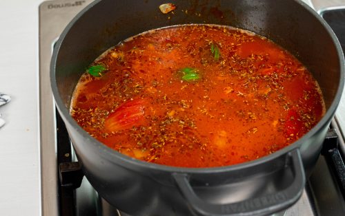3.Add the peeled tomatoes along with their juices and cook until the tomatoes start to break down.