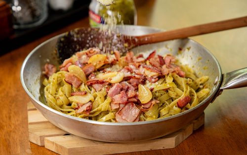 Spicy Bacon Pesto Fettuccine (สไปซีเบคอนเพสโต้เฟตตูชินี)