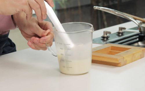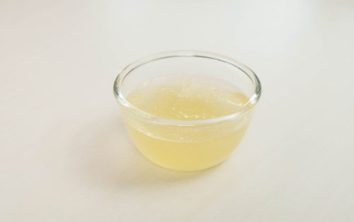 4.แช่ผงเจลาตินในน้ำ 80 กรัม พักไว้ให้พองตัว