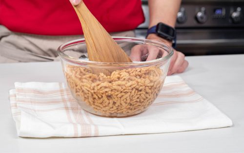1.แช่โปรตีนเกษตรในน้ำประมาณ 2-3 นาที จากนั้นบีบน้ำออกให้แห้งสนิท